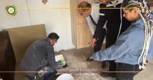 خلال الجولة التفقدية، اطّلع الوفد على الأعمال الجارية التي تشمل أعمال الإنشاءات من خلال إصلاح أرضيات الكرفانات الدراسية وسد الثقوب في أسقفها، وأعمال الاستبدال التي تمثلت بتركيب نوافذ جديدة محل التالفة، بالإضافة إلى أعمال الوقاية بتركيب أغطية واقية للأسقف لمنع تسرب مياه الأمطار.