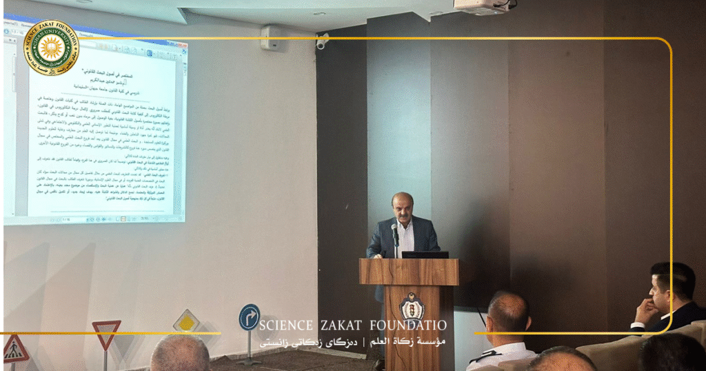 في إطار الجهود المشتركة لرفع المستوى العلمي والمهني، وبالتعاون بين قسم القانون في جامعة جيهان – السليمانية، ومؤسسة زكاة العلم، ومديرية التوجيه والإرشاد المعنوي-السليمانية، أقيمت في قاعة الندوات بالجامعة ندوة علمية بعنوان “منهجية كتابة البحث العلمي” لـ ٨٠ ضابطاً ومنتسباً من مديريات وزارة الداخلية في السليمانية.
