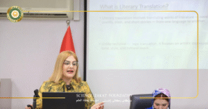 افتُتحت الورشة بعرض تمهيدي حول أهمية الترجمة الأدبية، قدمته الأستاذة تفان كمال من قسم التربية العامة. وقد تضمن العرض مناقشة أنواع الترجمة المختلفة، مع تسليط الضوء على الدور الحيوي الذي تؤديه الترجمة الأدبية في حفظ ونشر السرديات الثقافية.