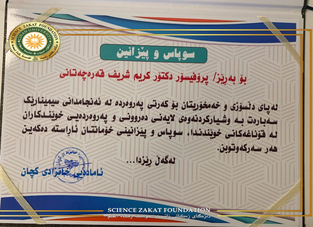 Today, Monday, 2026/2/9,Within the framework of volunteer work for the Zakat Al-Ilm Foundation at Cihan University Sulaimaniyah، as the Director of the Psychological and Social Counseling Center at Cihan University – Sulaimaniya, I delivered an educational seminar entitled “The Importance of Cooperation and Communication Between Family and School” to the mothers and fathers of the students of Rizgary Girls Preparatory School.